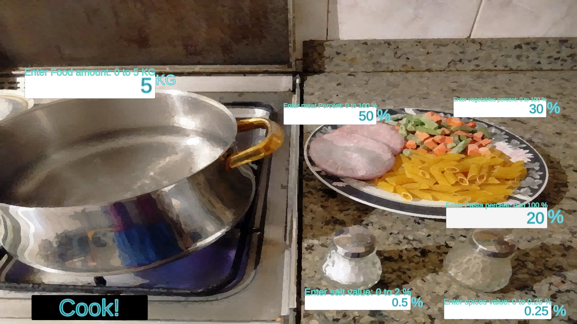 The game is inspired by what i do in reality, as i actually use a scale for ingredients and a precise one for salt and spices, keeping my recipesin Excel and modifying them slightly after each meal if i didn't like something, It's a nice method, if you don't have a ready made recipe given by people who already tried things and done the experimentationloop, we can see importance of teaching this(experimentationloop) as the chief human method for figuring and inventing new things out, Edison kept in a loop trying different materials until he figured out the best material for a light bulb, I believe such talk makes this thinking method more clear, and better used.